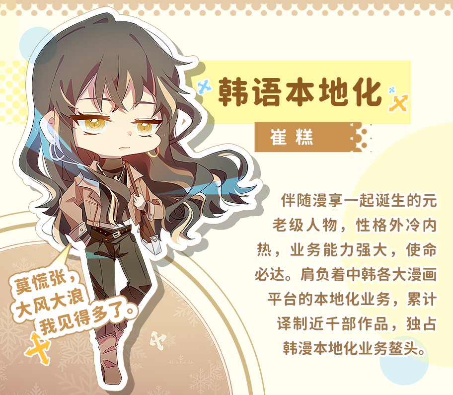 香蕉漫画于2017年成立于北京,现已在香港、成都、沈阳三地设有子公司,业务涉及漫画本地化、漫画版权代理、漫画再制、原创漫画创作等多个领域。 我们的理念:择一事终一生,香蕉漫画希望做漫画行业的匠人,希望为每个用户提供极致的服务和作品。